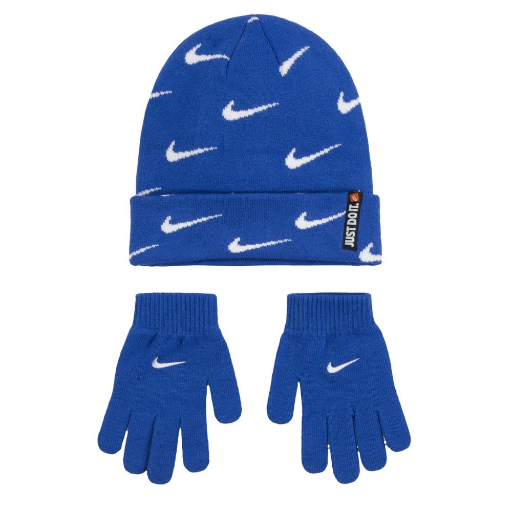 Blue Boys Swoosh All Over Print Roll Cutt Beanie Set Nike Rack