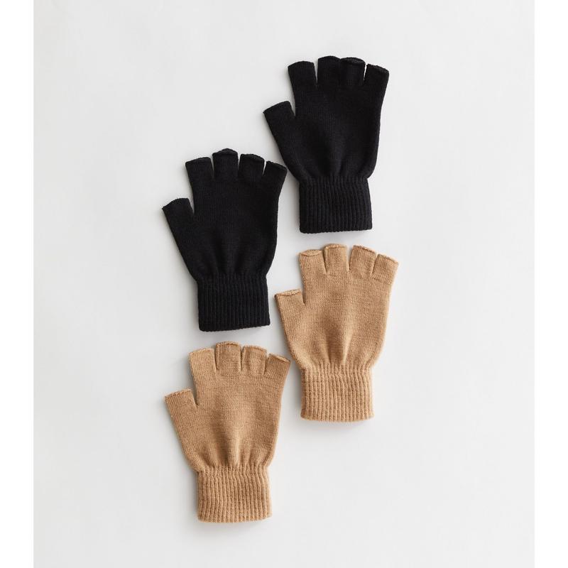 Girls 2 Pack Black and White Eyelash Knit Gloves New Look