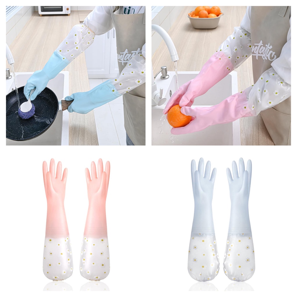 Waterproof clearance dishwashing gloves, 1Pair Waterproof Kitchen Gloves Non Slip Long Rubber Gloves for clearance