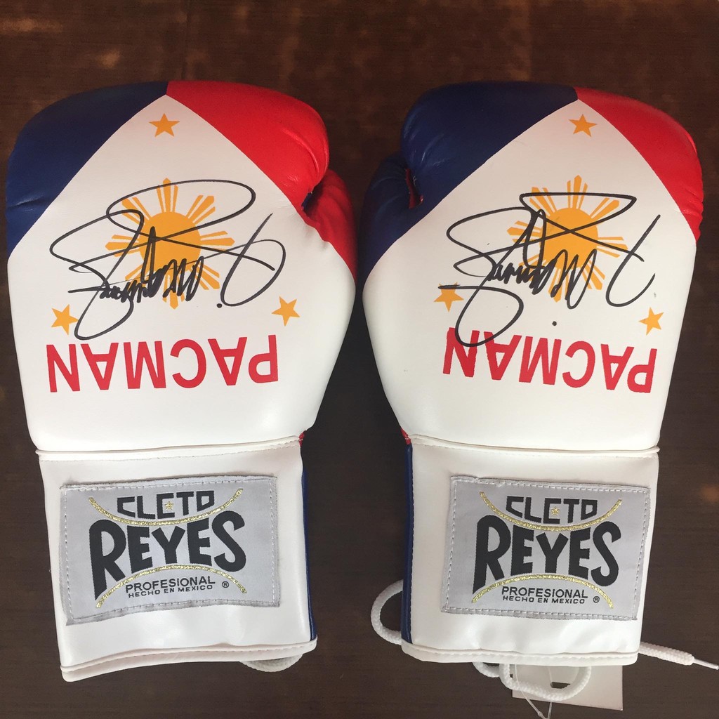AUTOGRAPHED PACMAN LIMITED EDITION CLETO REYES BOXING GLOVES BY
