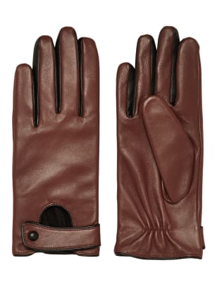 Marks And Spencer M S Soft LEATHER Driving winter Gloves Brown
