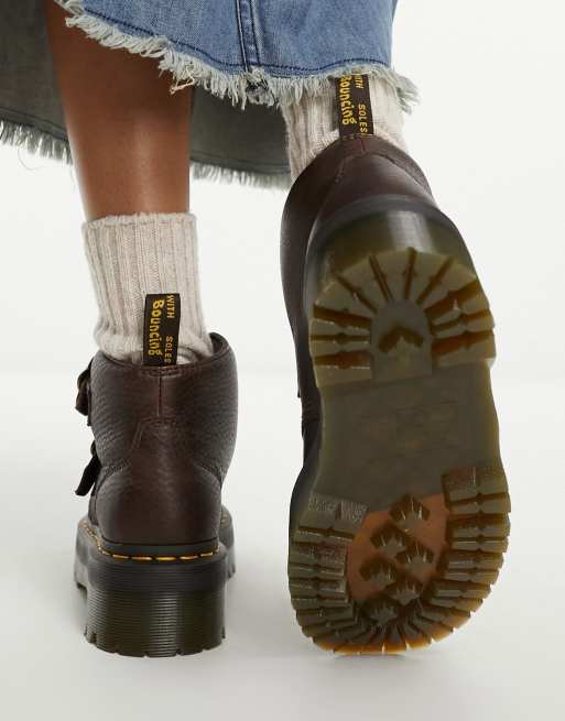 Dr Martens Devon flower quad boots in dark brown grizzly leather