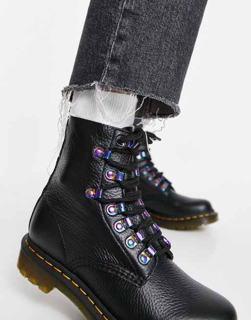 Dr Martens 1460 Pascal boots with iridescent hardware in black ASOS
