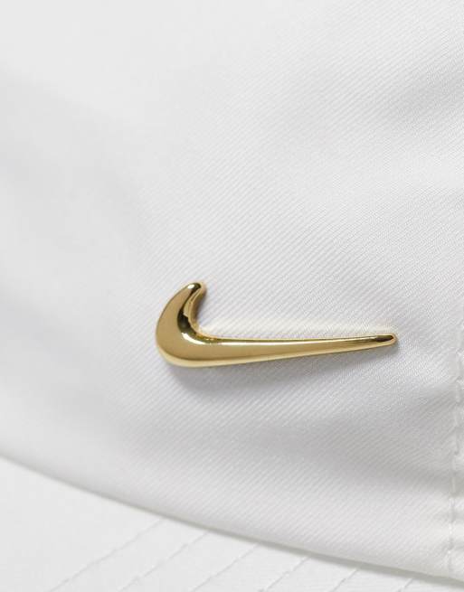 Nike metal swoosh cap in sail with metallic gold swoosh ASOS