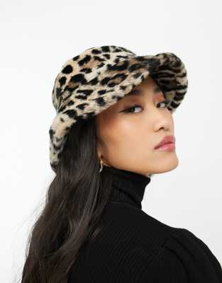 Bucket clearance hat monki, Monki Faux Fur Bucket Hat In Leopard Print brown ModeSens clearance