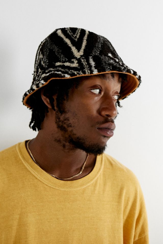 Borg clearance bucket hat, UO Black Print Reversible Borg Bucket Hat Urban Outfitters UK clearance