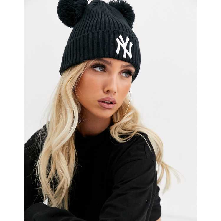 New york yankees clearance beanie with pom, New York Yankees Womens League Essential Dubble Bobble Black Pink clearance