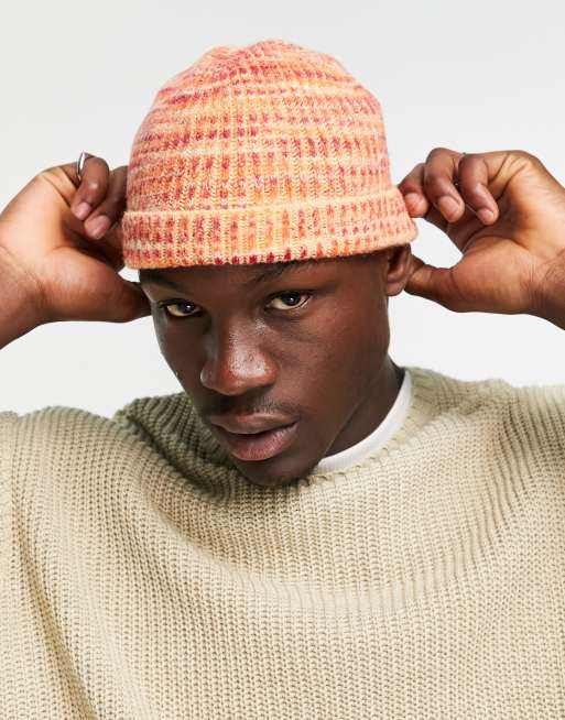 Fisherman clearance mini beanie, ASOS DESIGN mini ribbed fisherman beanie in red and orange space clearance
