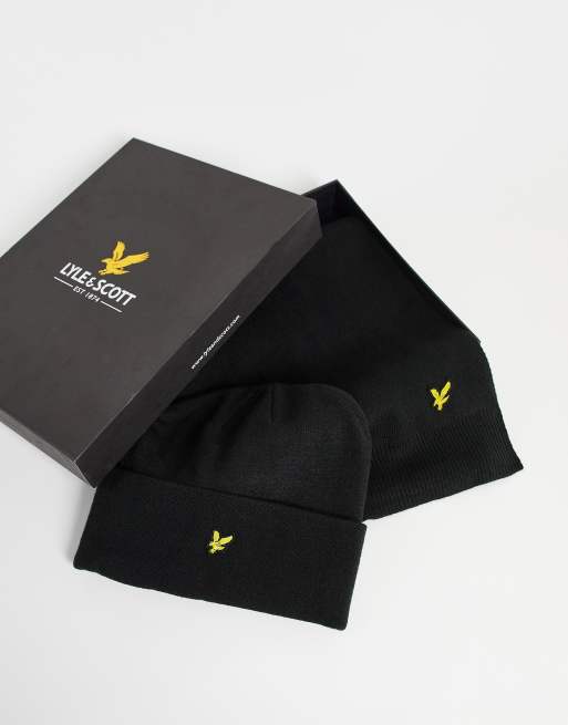 Lyle and Scott hat beanie and scarf gift set in black ASOS