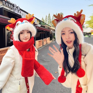 Girls clearance spring hats, 2024 Chinese New Year Lion Dance Hat Red Plush Cap with Scarf clearance