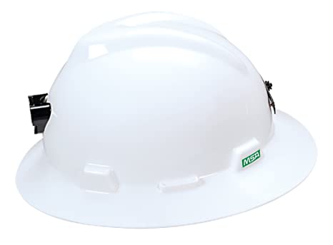 MSA 475369 White V Gard Slotted Full Brim Hard Hat w Fas Trac III Susp