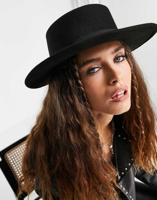 Gorgeous Black Women s Boater Hat in Wide Brim Wool Felt Made in Spain