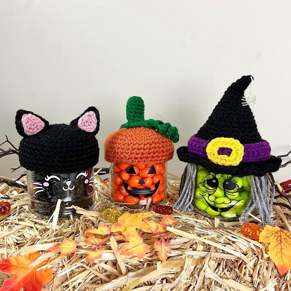 Halloween Dollar Store Jar Hats Crochet pattern by Sonya