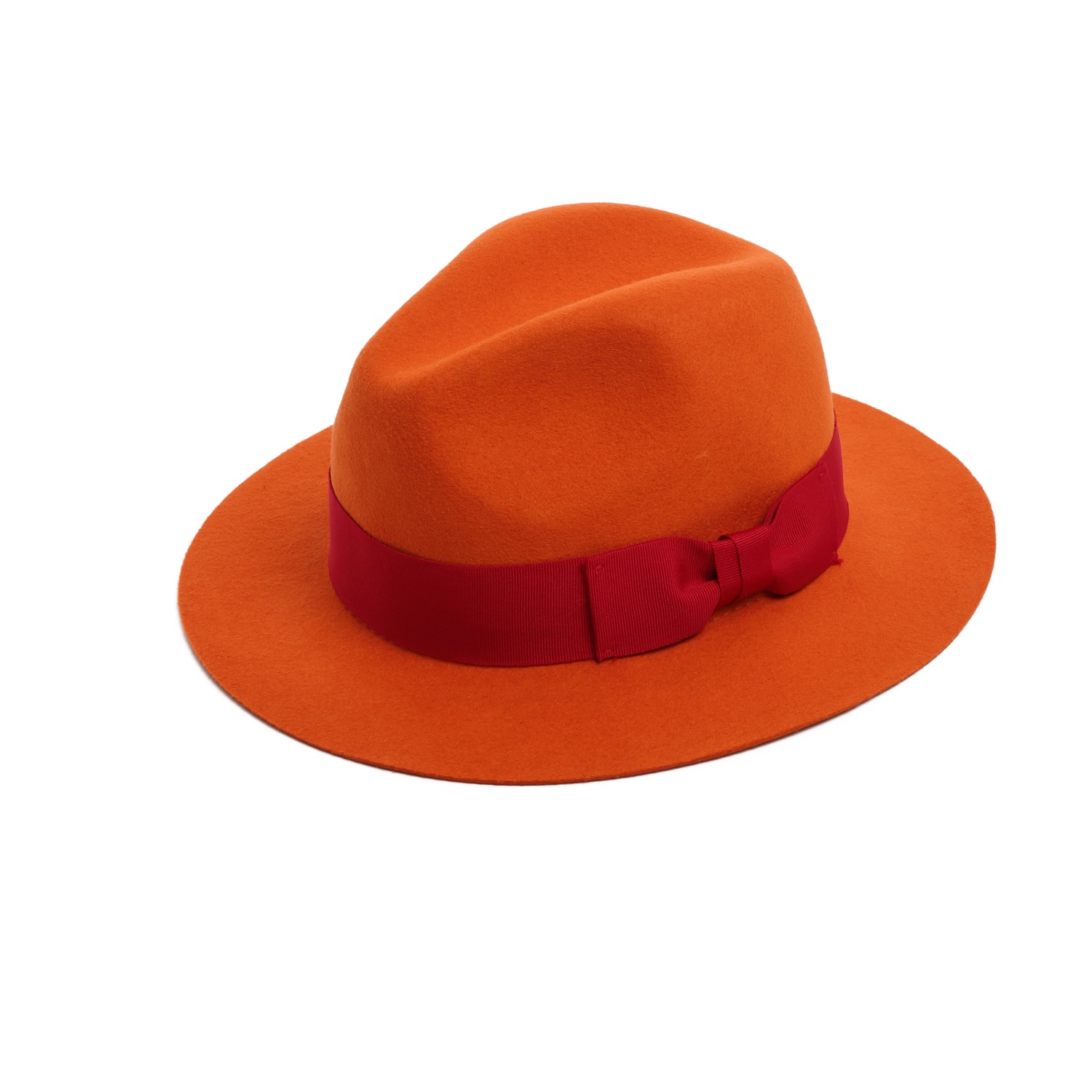 Orange Felt Fedora With Red Band Justine Hats Wolf Badger