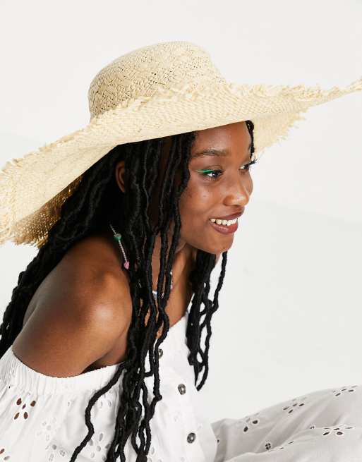 South Beach Exclusive natural grass woven straw wide brim hat ASOS