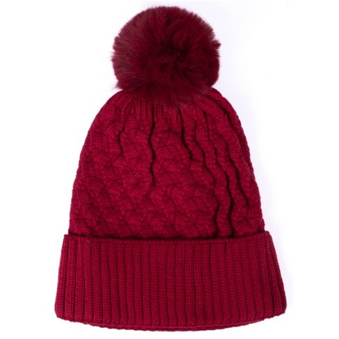 Target womens knit clearance hats, Thedappertie Women s Red Solid Color 100 Polyester Cable Knit Hat clearance