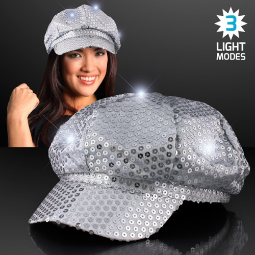 Sequin clearance newsboy cap, Sequin Silver LED Newsboy Cap Hats EverythingBranded USA clearance