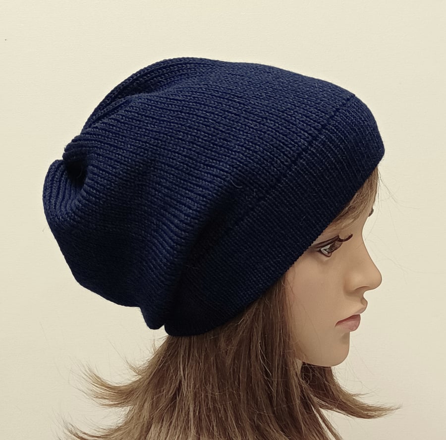 Handmade baggy beanie navy blue knitted alpaca Folksy