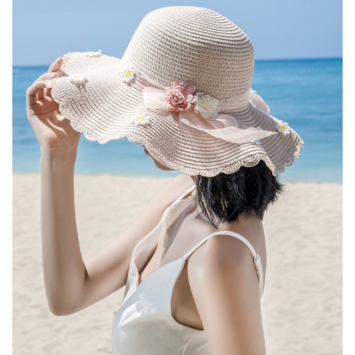 Summer Beach Hat Women Lovely Daisy Straw Hat Bowknot Sun Hat