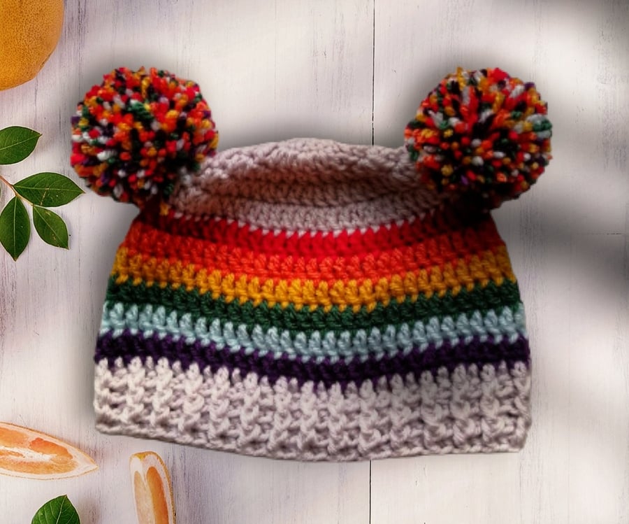 Rainbow clearance baby hat, rainbow baby hat double pompom 0 3 months Folksy clearance