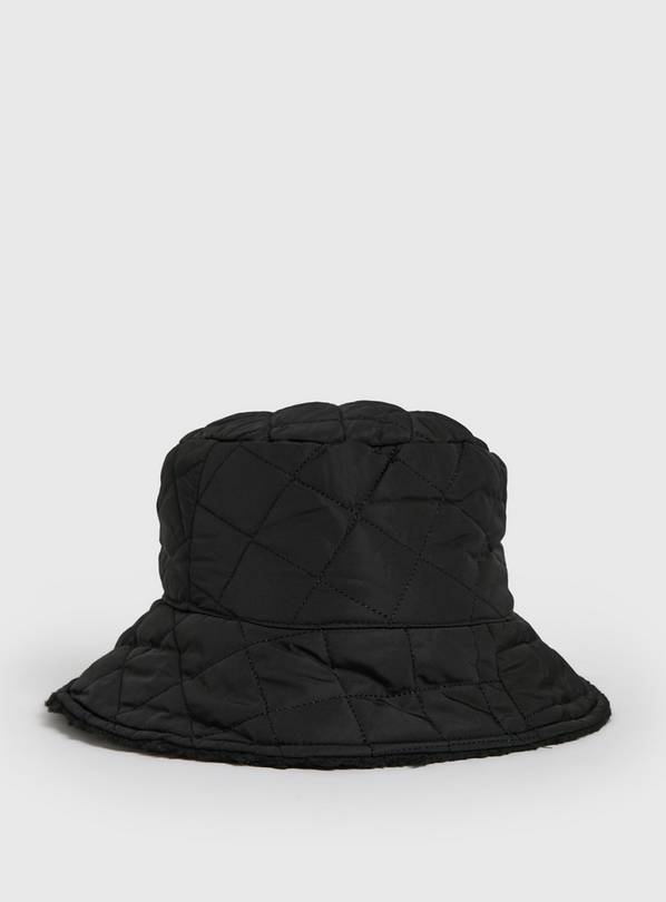 Buy Black Reversible Borg Quilt Bucket Hat One Size Hats Tu
