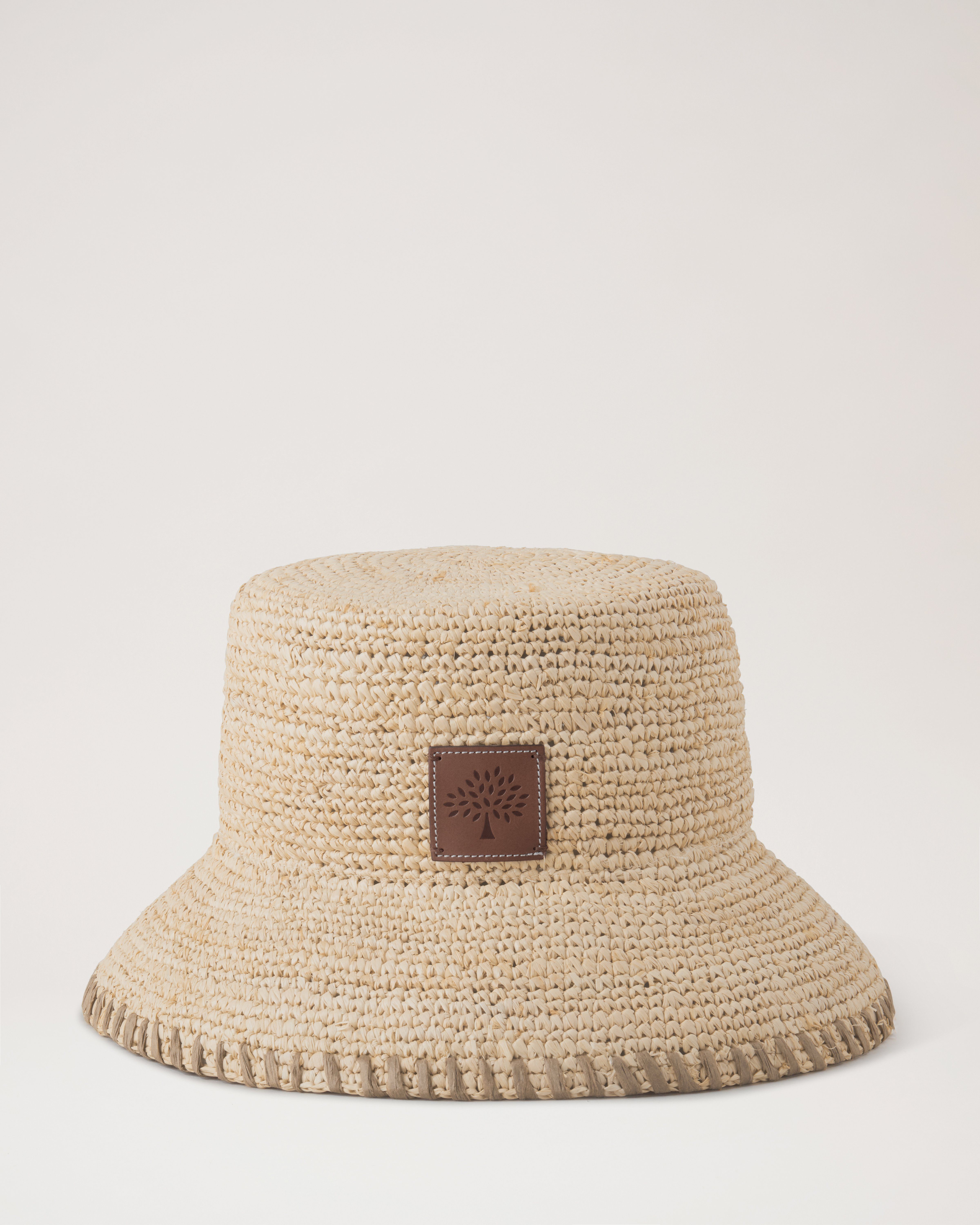 Whip Stitch Summer Raffia Bucket Hat Beige Raffia Women Mulberry
