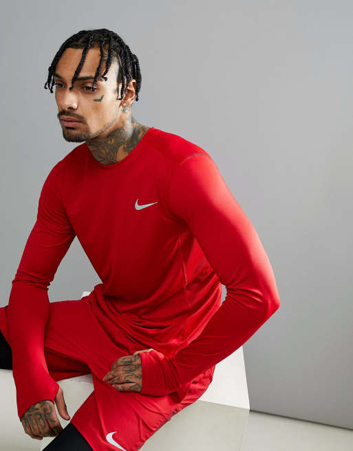 Nike Running Dry Miler long sleeve top in red 833593 687