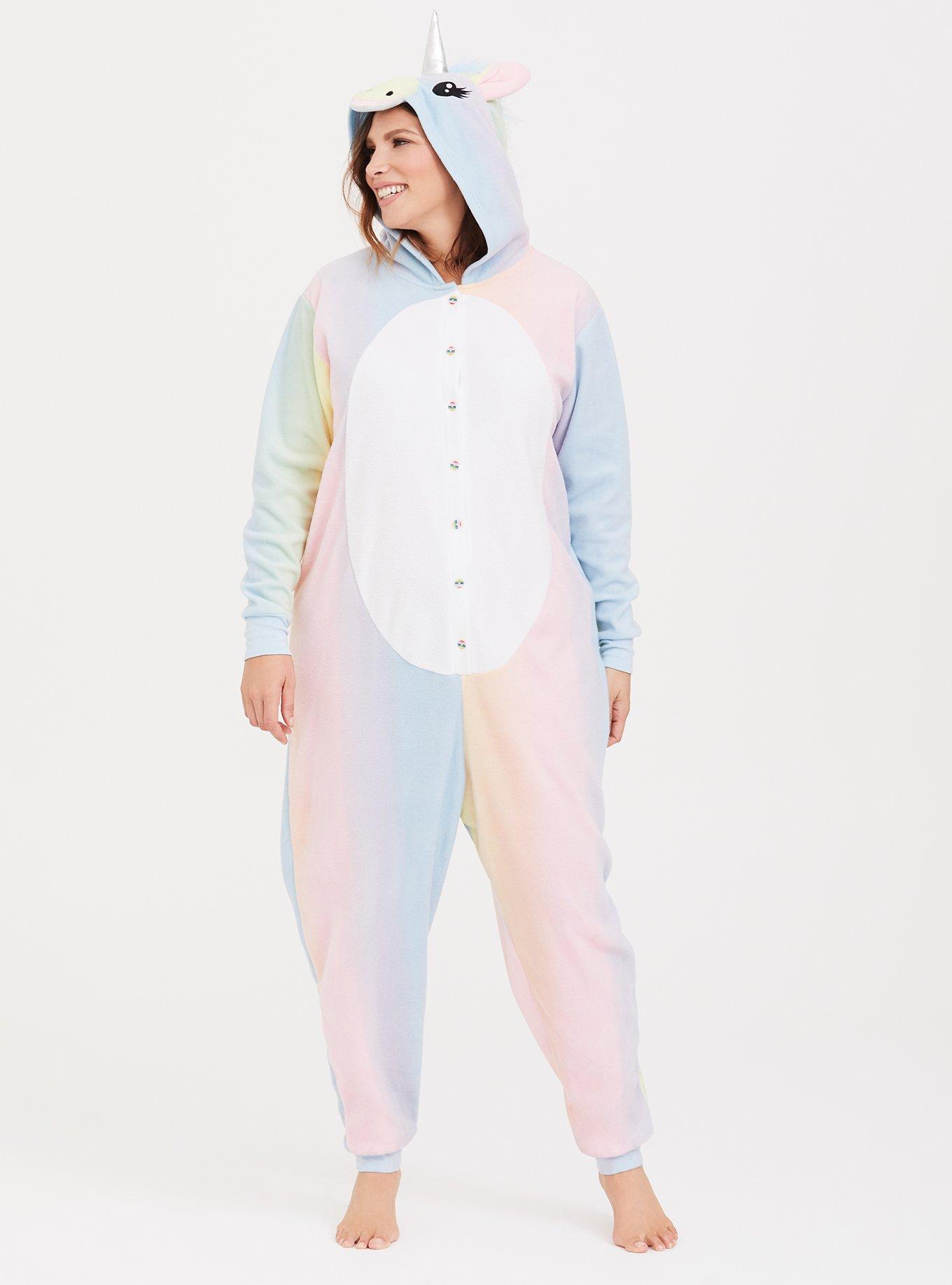 Plus Size Pastel Rainbow Unicorn Fleece Onesie Torrid