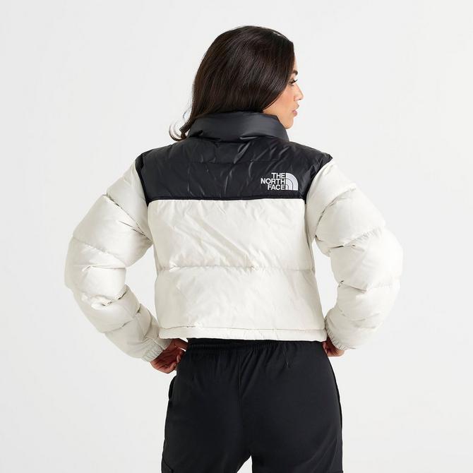 The North Face Nuptse cropped down puffer jacket in white and black