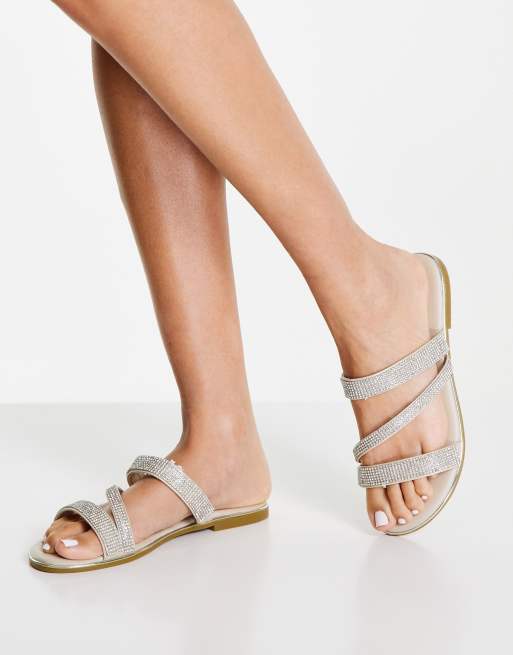 Truffle Collection embellished bridal sliders in silver ASOS