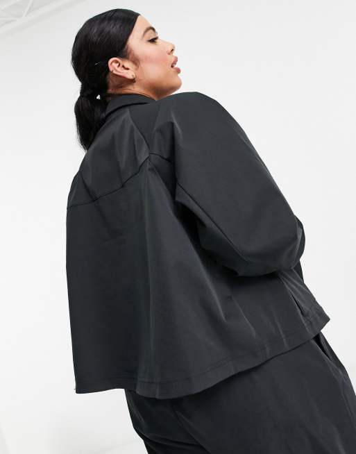 Nike Swoosh Plus woven jacket in black with utility pockets